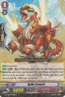 Центр нашей колоды; дино-дракон, которого Вам ВСЕГДА будет хотеться видеть в авангарде. Вообще, этот воин настолько хорош, что вокруг него можно как строить собственную колоду, так и добавлять его в другие сборки, например в тех же Рапторов и Древних драконов [да, некоторые возрождения не будут работать, но Гая сам возрождает двух при вознесении, так что это не проблема]. В целом, этот дино-дракон даёт Вам два возрождения за ход, что открывает Вам множество возможностей для игры. Вы можете приносить в жертву Baby Camara, активировать его способность, призывать нового воина на поле, и возвращать этого самого Baby Camara на поле, что позволит Вам потом повторить всё это вновь. Вы можете убивать своих воинов для кого-то вроде Great Emperor Dragon, Gaia Dynast и возрождать их, что даст Вам дополнительные атаки. Вы можете приносить в жертву Cold Dragon, Freezernyx, активировать его способность и возвращать его на поле. И это лишь часть того, что этот воин позволяет делать. Да и не надо забывать о первой способности, которая позволяет Вам давить критическим ударом в случае, если у Вас нет вознесения. В общем, воин просто замечательный, его явно стоит рассматривать чуть ли не во всех клановых колодах, кроме, пожалуй, Рексов, ибо у них там своя атмосфера.